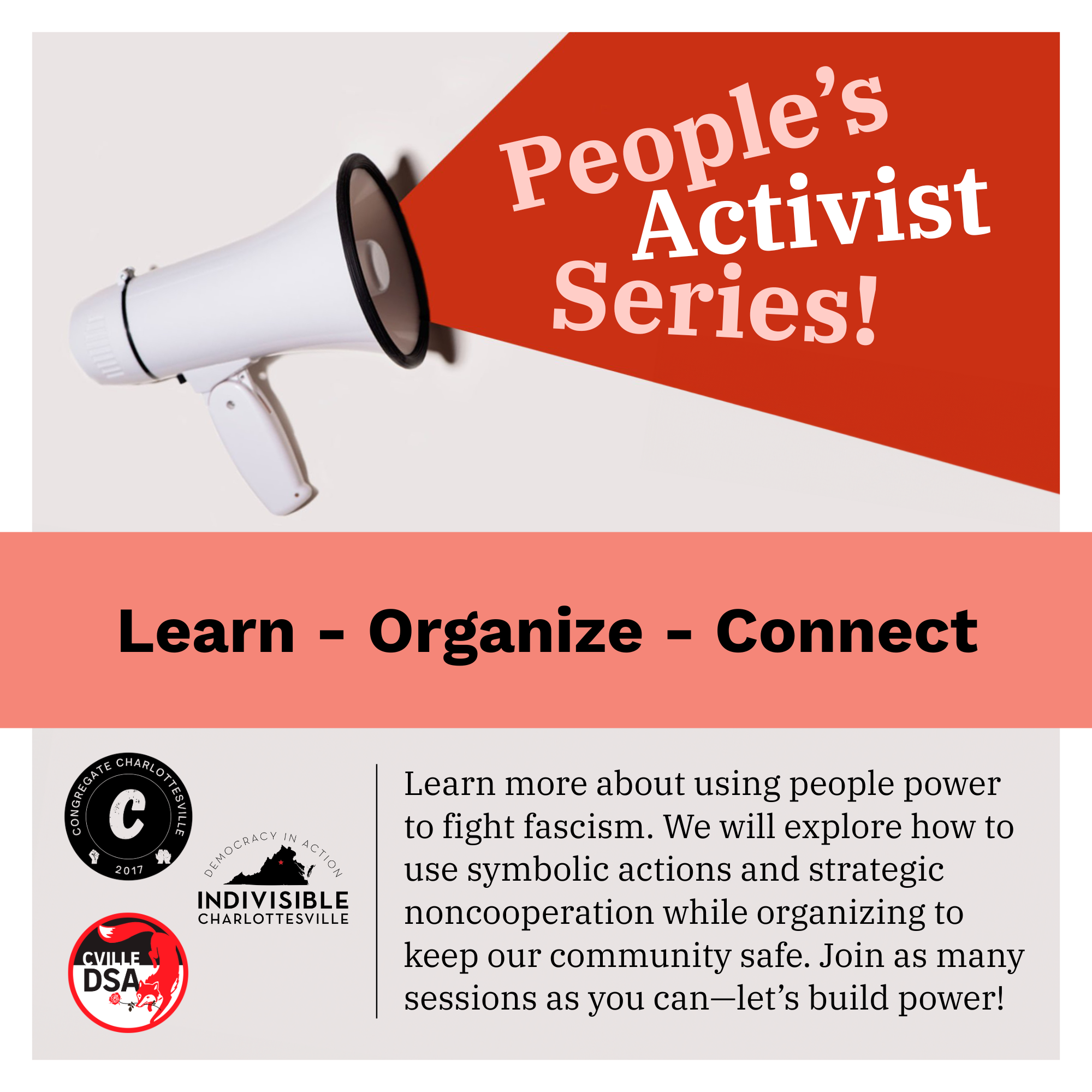 Hosted by Indivisible Charlottesville, Congregate Charlottesville, and Charlottesville DSA
